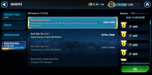 Do not choose hoarding energy to get higher tiers in Guild Activities over reaching 600